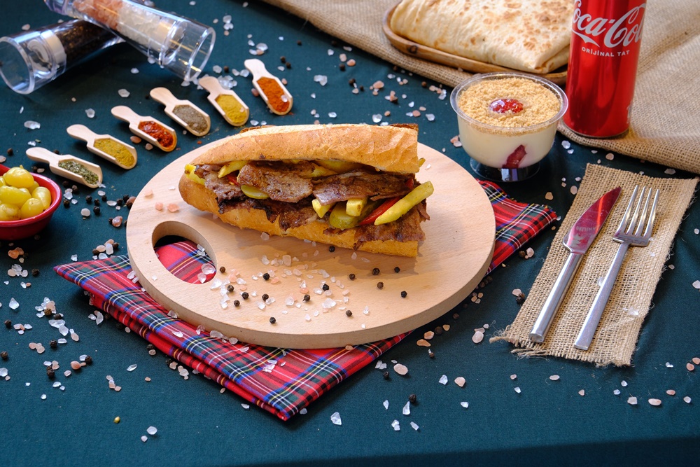 Yarım ekmek et döner Patates, turşu, domates, isteğe bağlı soğan
